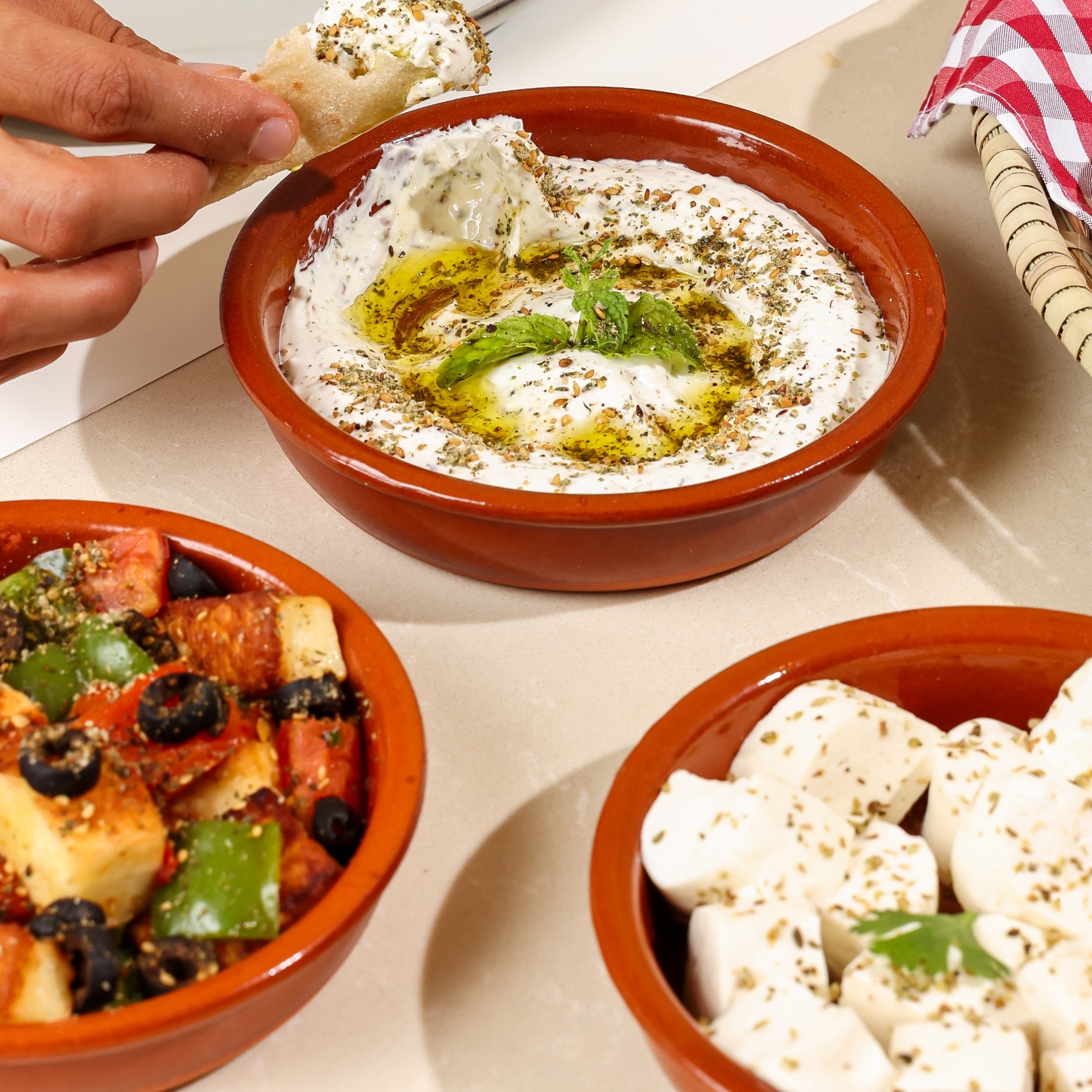 لبنه بالزعتر - مربي بالقشطه - جبنه بالطماطم - جبنه بيضاء - جبنه بالحلاوه -سلطه